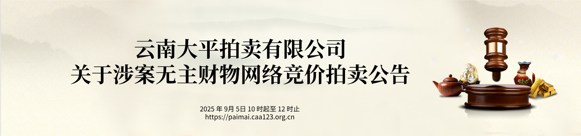 云南大平拍賣有限公司是一家經云南省經貿委于2002年6月15日批準,由思茅地區工商行政管理局于2002年7月30日核準成立的手續齊備、資質完善的綜合性拍賣企業,是一家拍賣經驗豐富、市場資源龐大、組織結構優秀的具有超前經營理念的企業。2004年被省拍協評為理事單位。 〔大平宗旨〕公司崇尚誠信,銳意進??;堅持公開、公平、公正的經營原則,秉承“客戶為本,服務至上,執業嚴謹,公平競爭”的經營理念,本著友好合作、平等互利的原則,與客戶及合作者謀求共同發展?!泊笃綐I...詳情>>